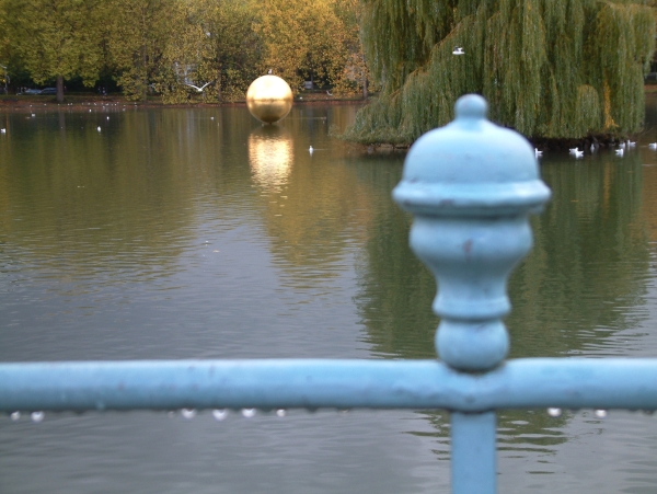 Die Goldene Kugel auf dem Benrather Schlossweiher ist mittlerweile abgebaut.